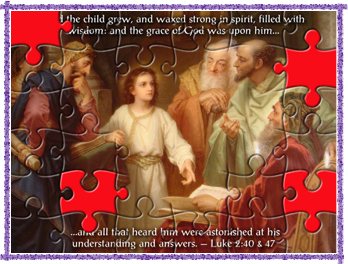 As you put these puzzle pieces together, think about the faith that Jesus had even as a child. He was obedient to his Father's will as he bore witness to the truth before the religious teachers. John 18:37